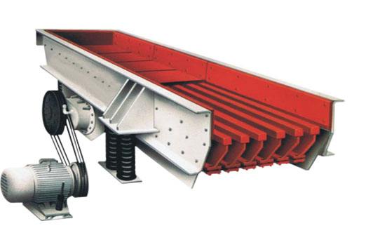 振動給料機又稱振動喂料機,是指可把塊狀、顆粒狀物料從貯料倉中均勻、定時、連續地給到受料裝置中去的一種設備。在砂石生產線中可為破碎機械連續均勻地喂料,并對物料進行粗篩分,廣泛用于冶金、煤礦、選礦、建材、化工、磨料等行業的破碎、篩分聯合設備中。